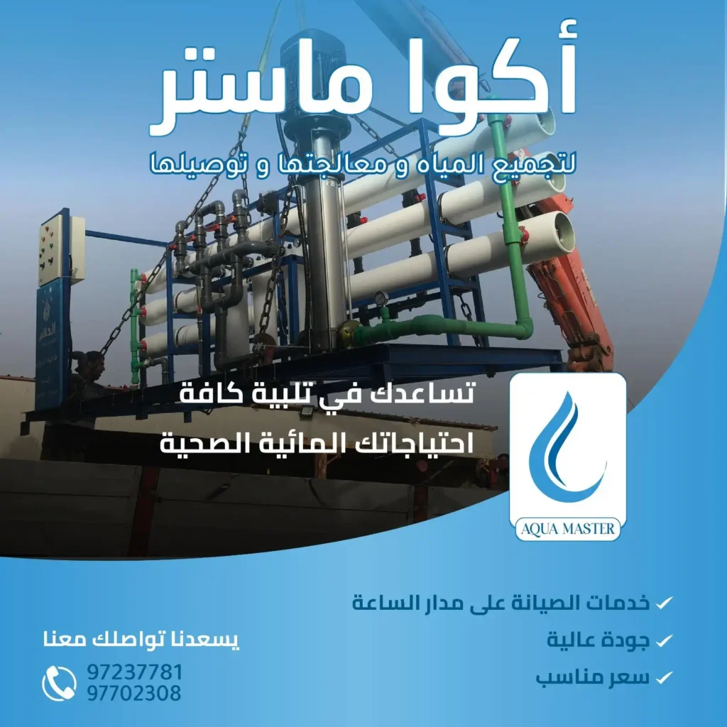 في عالم يزداد فيه الطلب على المياه النظيفة والصالحة للاستخدام، تبرز شركة أكوا ماستر في الكويت كواحدة من الشركات الرائدة والمتخصصة في حفر الآبار الارتوازية، محطات تحلية مياه الآبار والبحر، محطات معالجة الصرف الصحي والمياه الرمادية، وأنظمة الفلاتر والمضخات المتطورة.